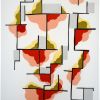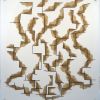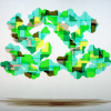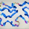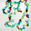 My first explorations with adhesive tape collage made use of random remnants of industrial adhesive tape collected from Boeing surplus. These were applied to a wooden backing and then carved with a utility knife to create smoke cloud forms. I happened upon transparent vinyl this way and eventually developed a series of translucent cloud forms on architectural vellum. With these later works I cut out the cloud pieces first, then arranged them into “cloud grid” forms.